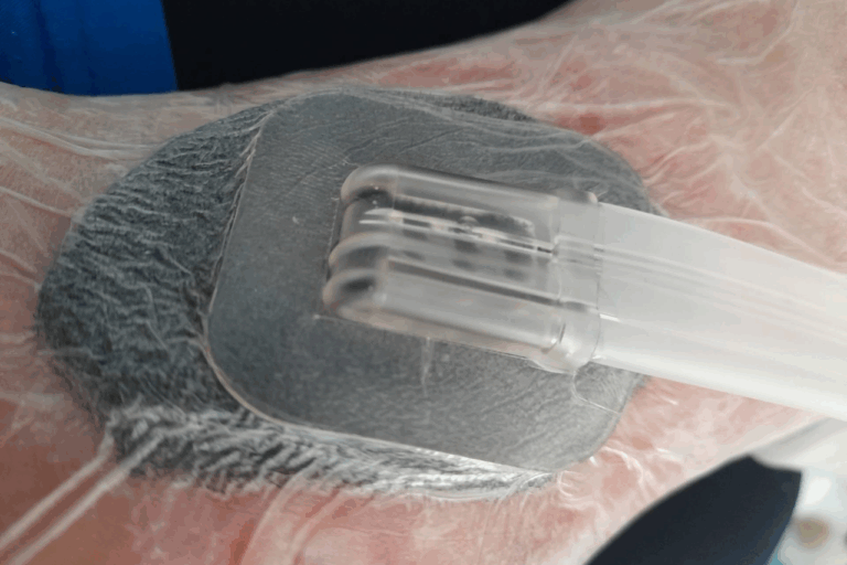 Sam zabieg nie powoduje bólu, ponieważ terapia działa w sposób ciągły i delikatny. Niewielki dyskomfort może pojawić się jedynie w trakcie wymiany opatrunku, gdy rana jest oczyszczana. Stosuję sprawdzone techniki, które pomagają zminimalizować te odczucia i zapewnić pacjentowi maksymalny komfort.